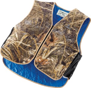 Comfortable, quilted nylon outer with HyperKewlTM polymer embedded fabric inner, water-repellant nylon liner, and black cotton-poly elastic trim